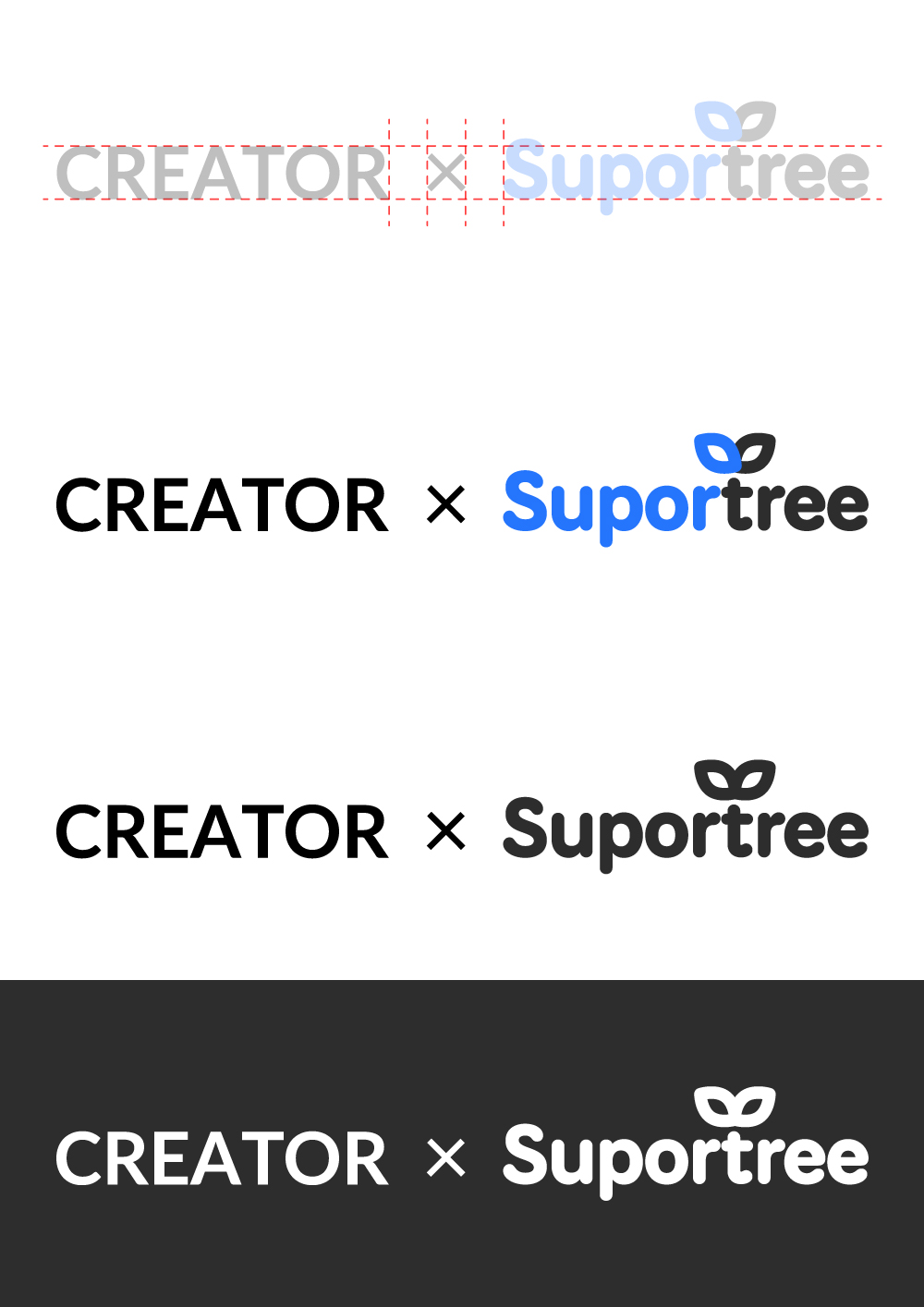 When used alongside a creator’s symbol, the partnership symbol must maintain matching height and consistent spacing.